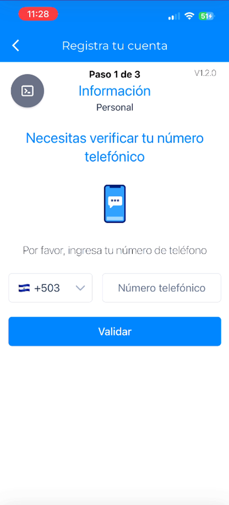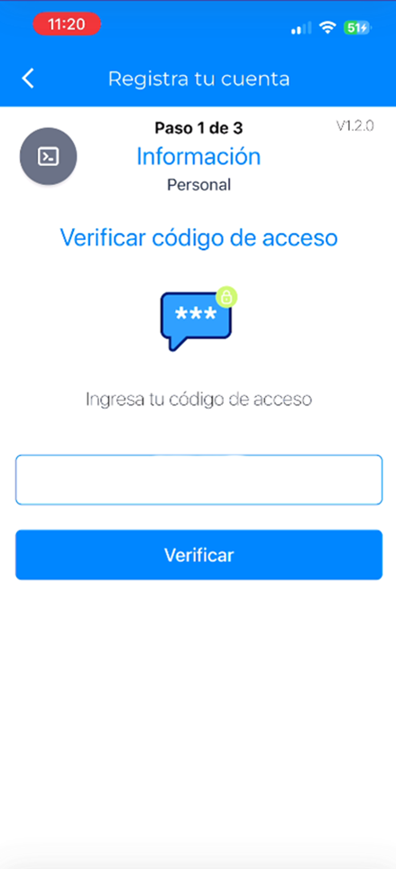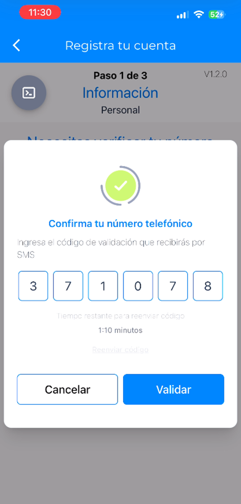 Recibirás un código por mensaje SMS en tu celular. Ingresa ese código para continuar.