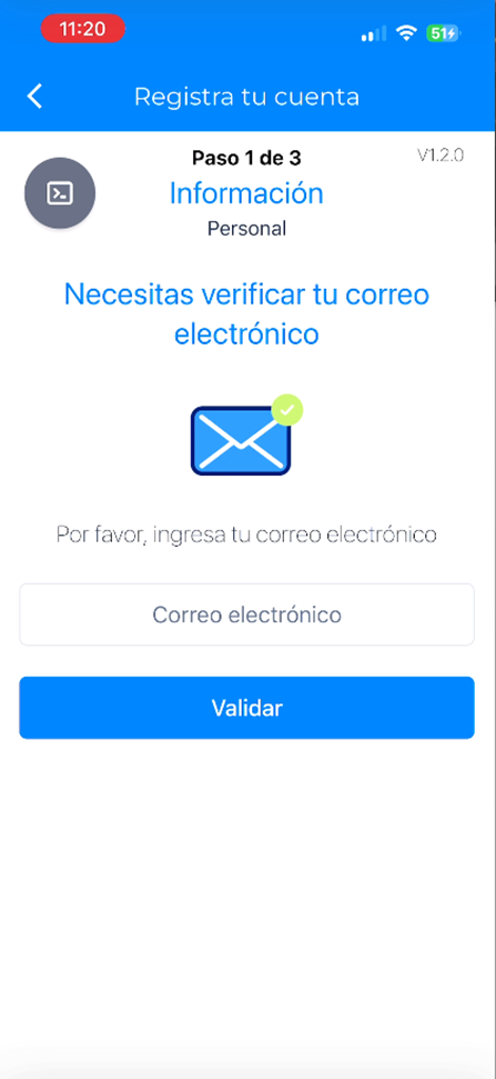 Introduce un correo electrónico personal al que tengas acceso inmediato, ya que será necesario para continuar el registro.