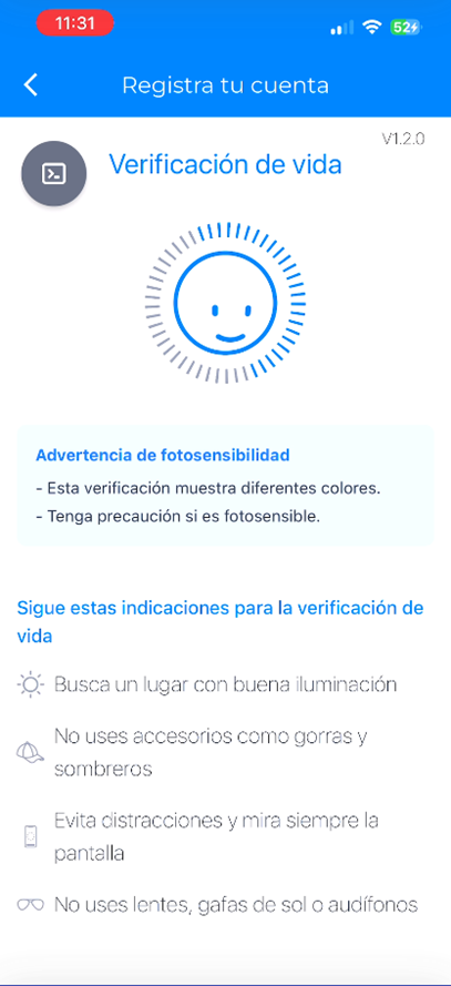 Se activará la cámara de tu dispositivo. Centra tu rostro en la guía mostrada y selecciona “Iniciar verificación de video”.