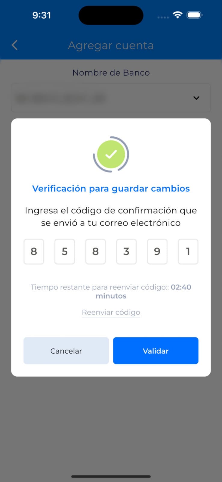 Por tu seguridad se enviará a tu email un código de confirmación que deberás ingresar a continuación.