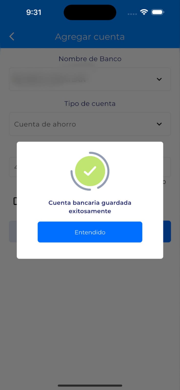 Esta nueva cuenta estará disponible para poder efectuar transferencias a ella
