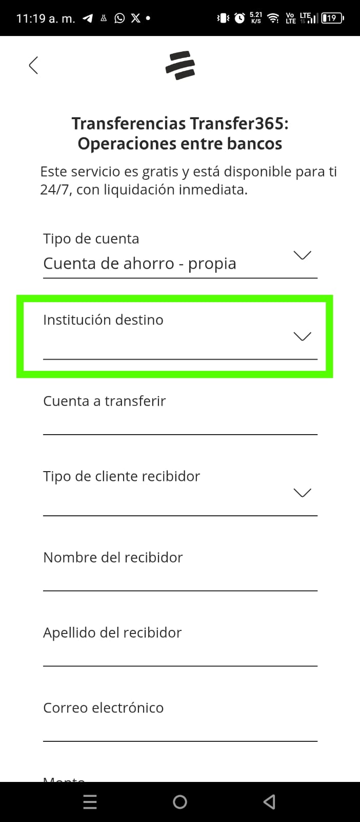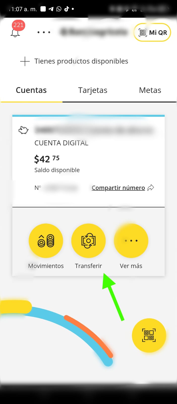 Seleccionar opción Transferir ó Transferencia,su ubicación puede varias de app bancaria a app bancaria y seleccionas