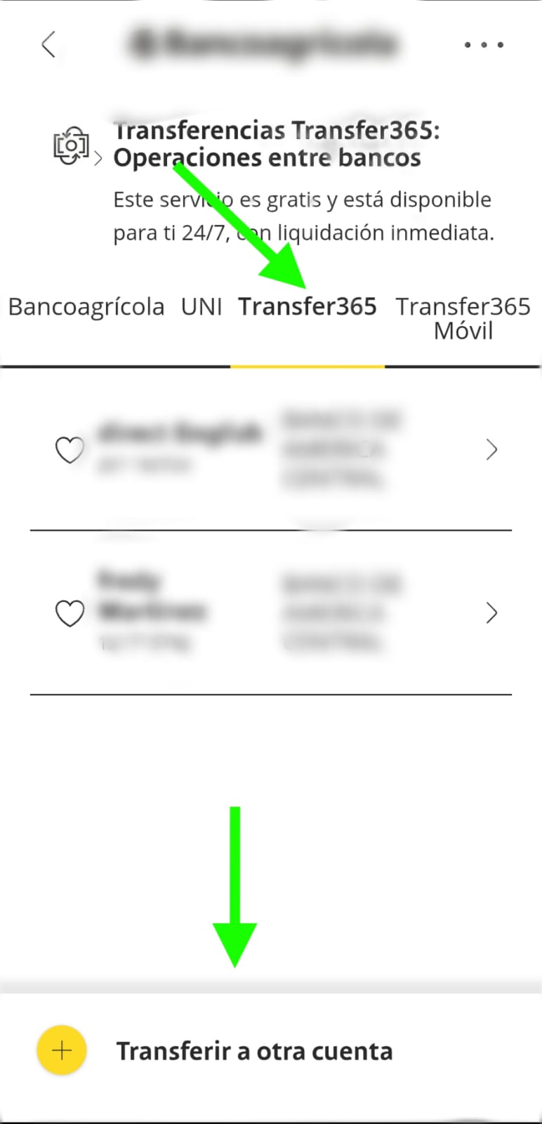 Paso 3: Seleccionar la opción Transfer365 (proveida por BCR) y luego selecciona “Transferir a otra cuenta”