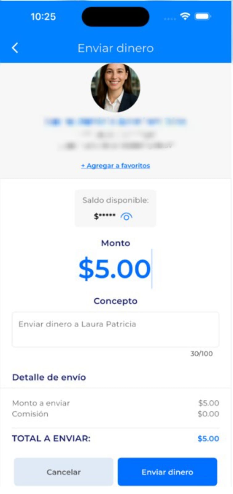 Tu transferencia ha sido procesada y el/la destinatario lo estará recibiendo en segundos.